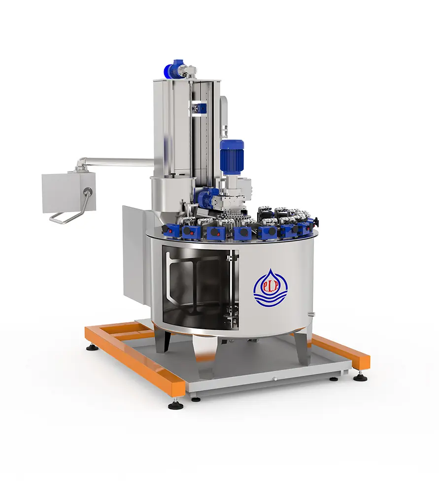 La cubierta en la que se coloca el agitador, las válvulas de carga y cualquier accesorio, permite un movimiento vertical de una manera completamente automatizada.