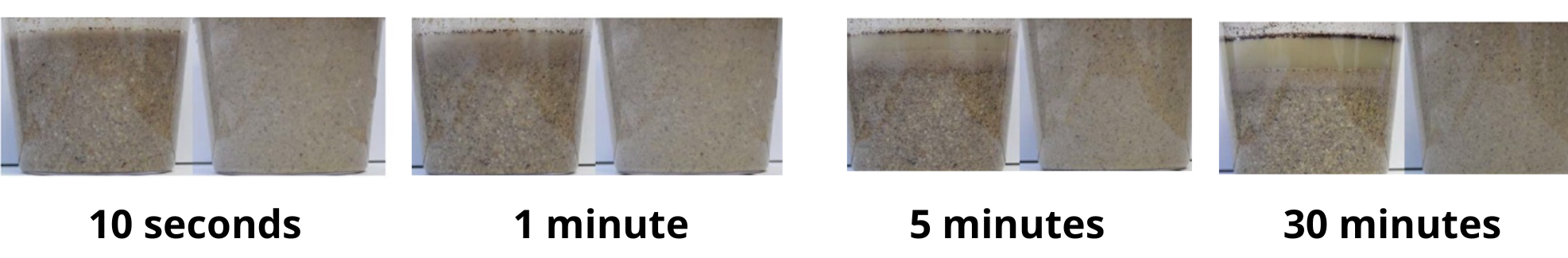 Comparision of liquid feed separation times. The sample on the left was obtained using a traditional mixer, while the one on the right was obtained using our EML Homogenizer.